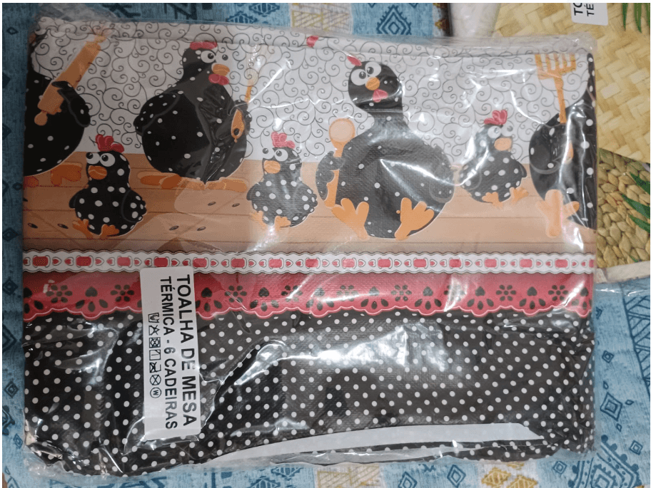 Toalha de mesa térmica e plástica, prática e resistente, ideal para mesas de 4 a 8 cadeiras. Protege contra calor e sujeira, sendo fácil de limpar.